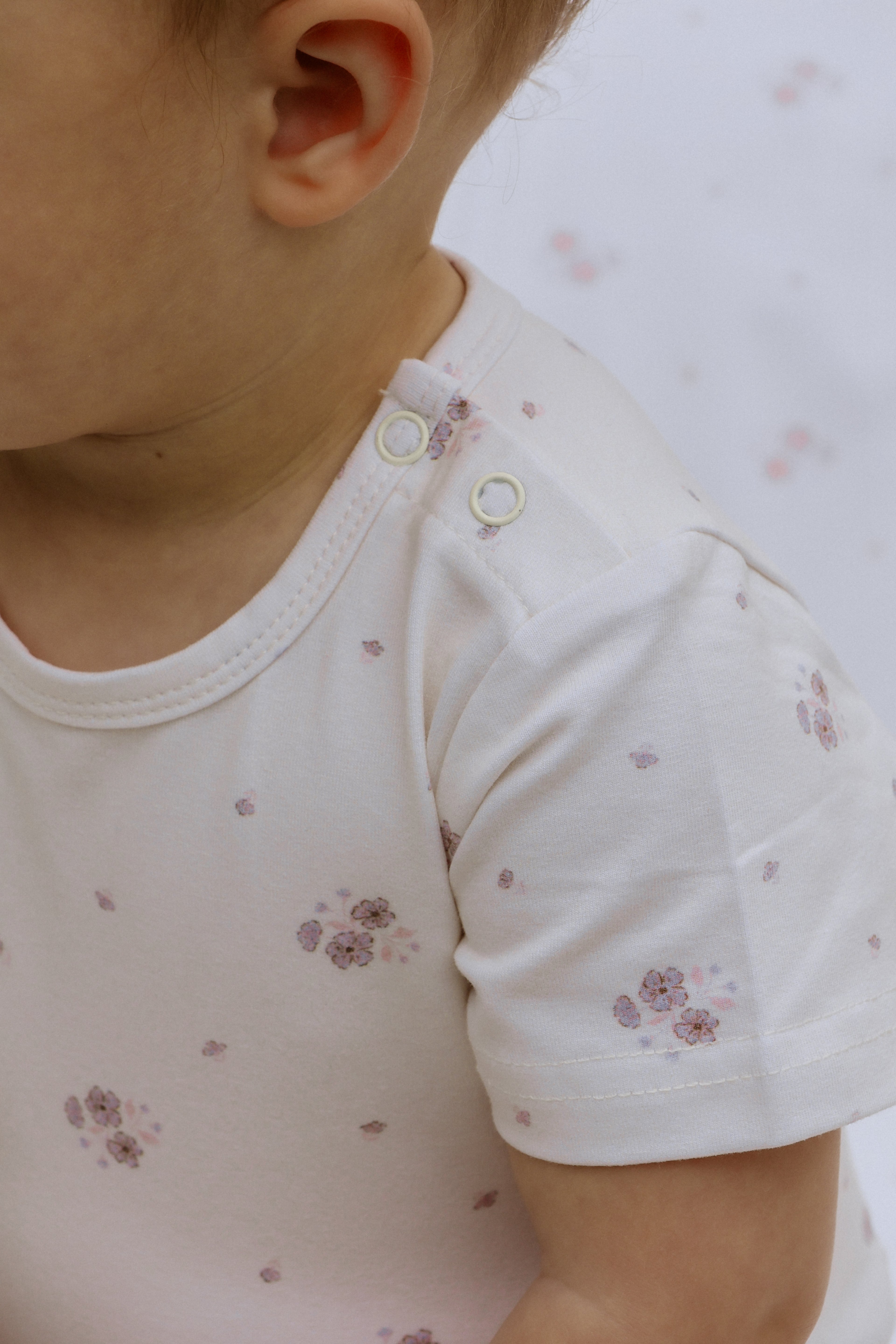 Soft and stretchy bodysuit for our little darlings. 100% Organic Cotton and a stunning floral print. Featuring snap buttons on shoulder for easy dressing.