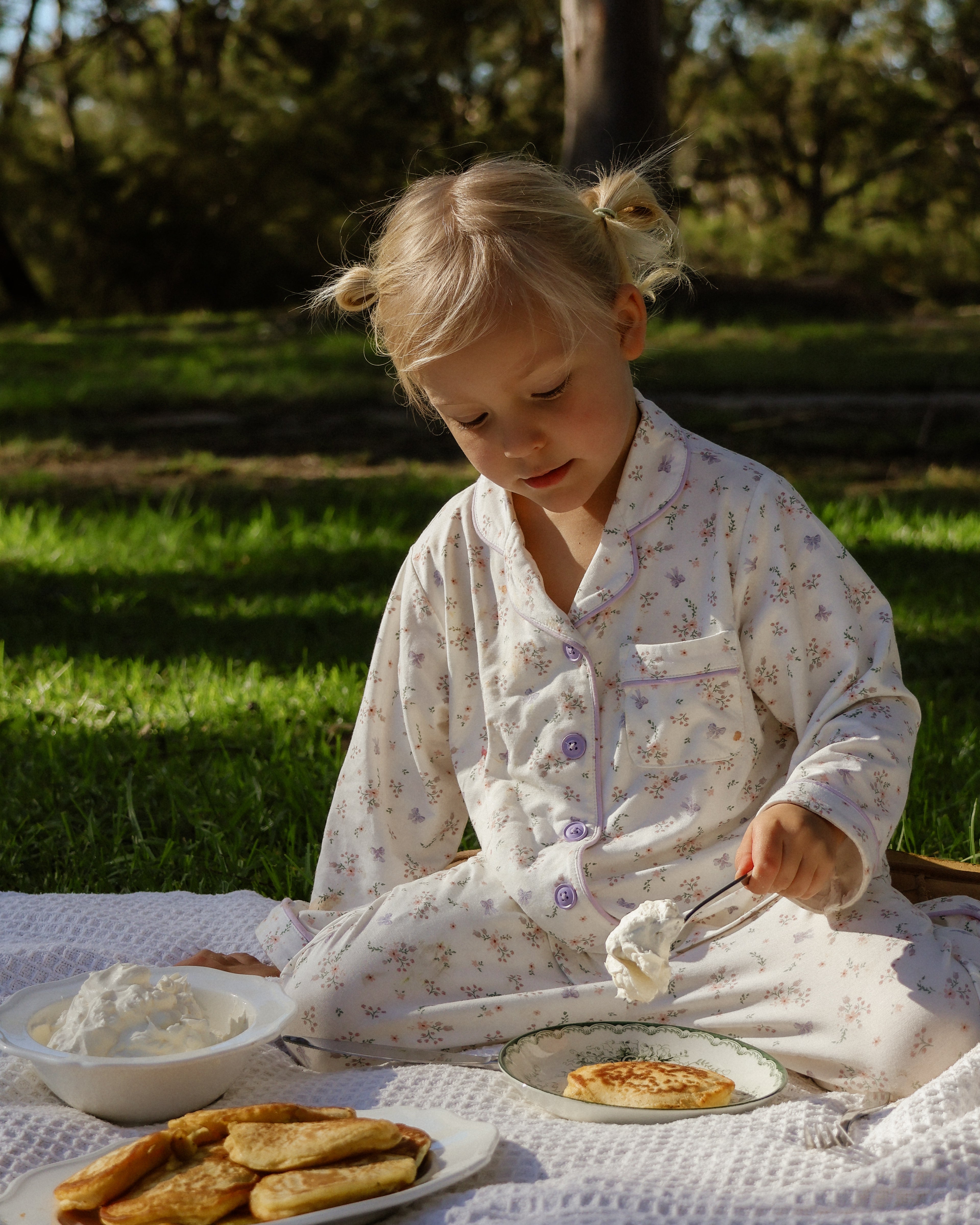 Step into Thea’s Garden, a nostalgic blend of soft florals, heirloom details, and timeless silhouettes inspired by childhoods spent in bloom. At the heart of this collection is our exclusive Thea Floral print, hand-illustrated in gentle lilacs and leafy greens to evoke warmth, whimsy, and wonder.