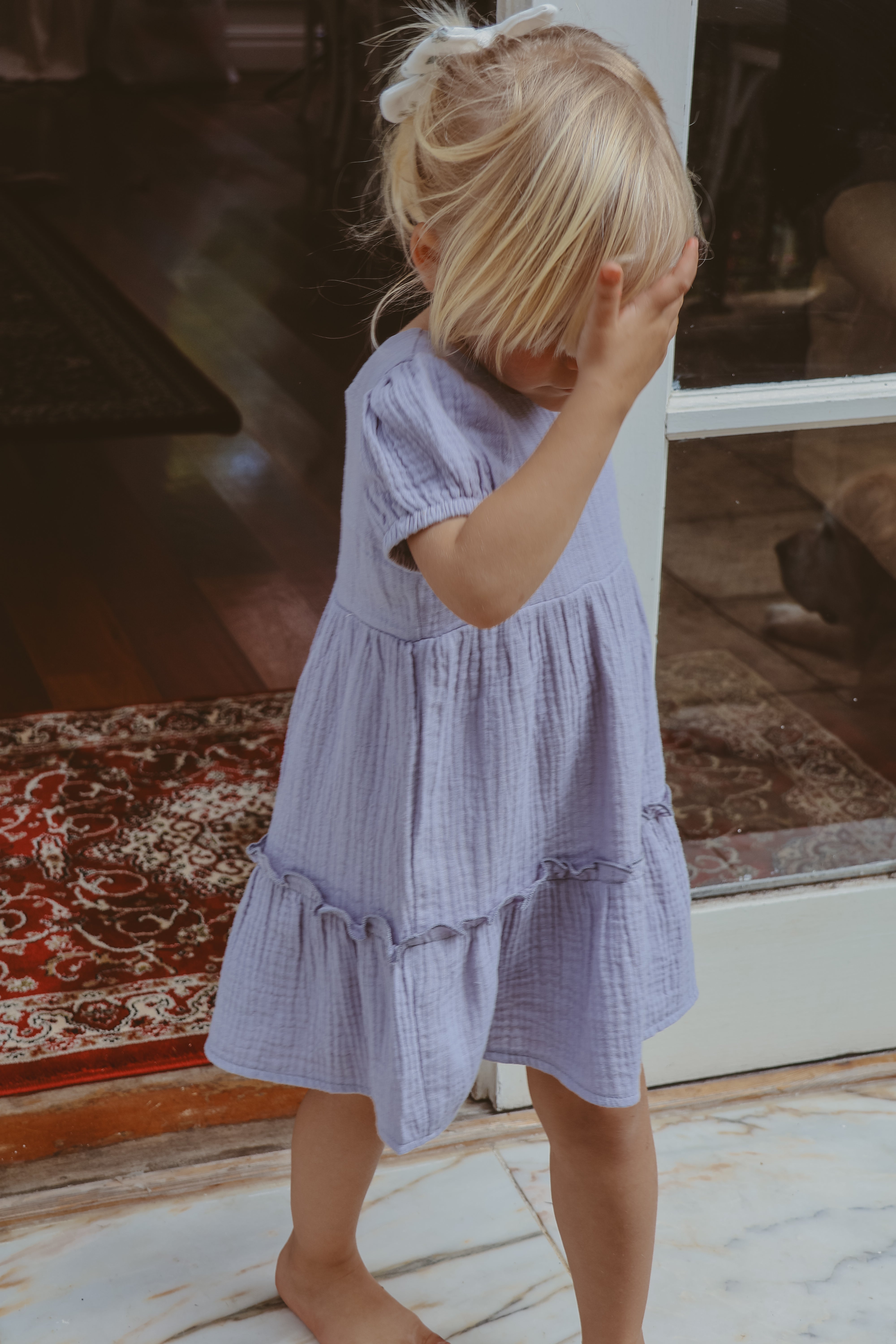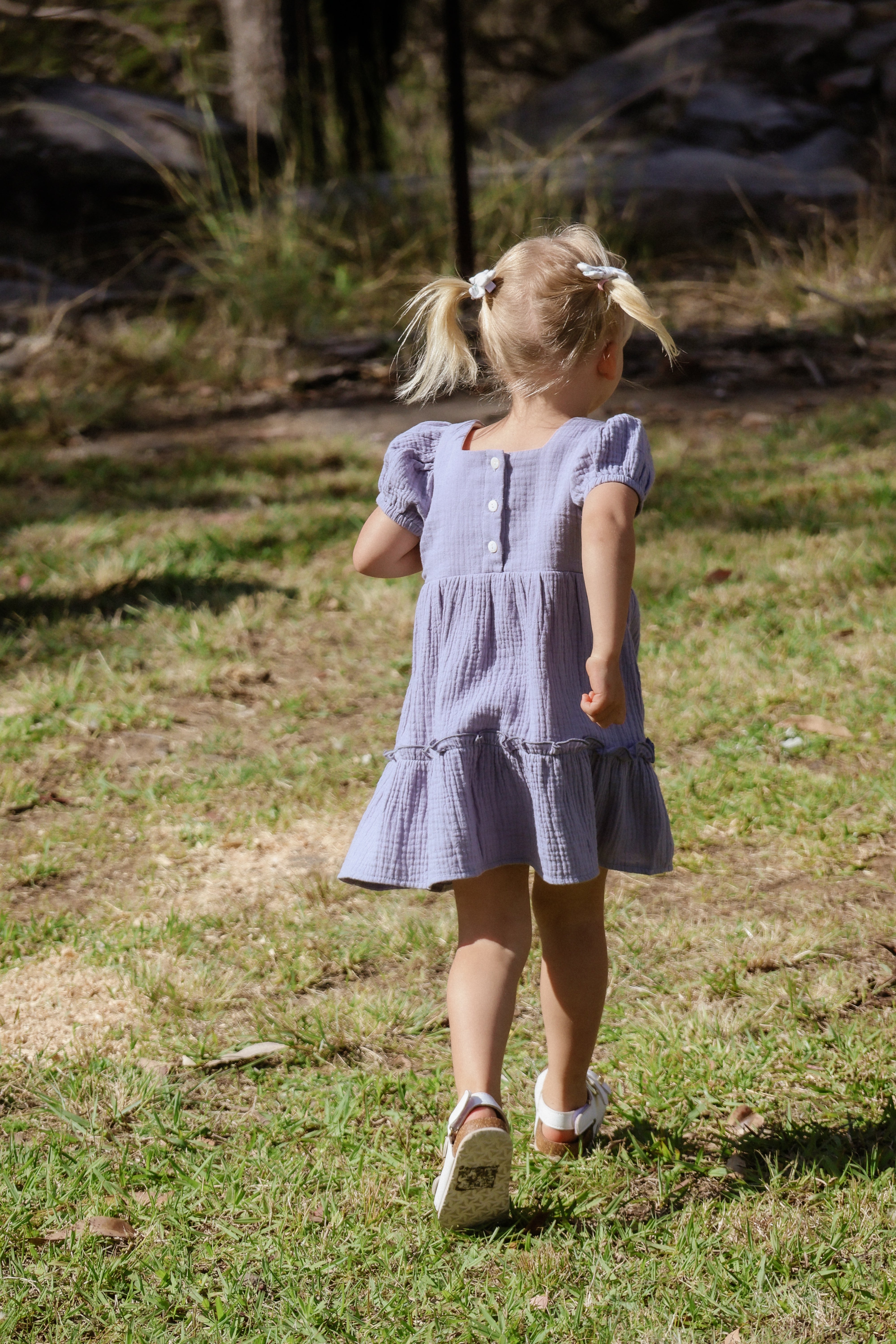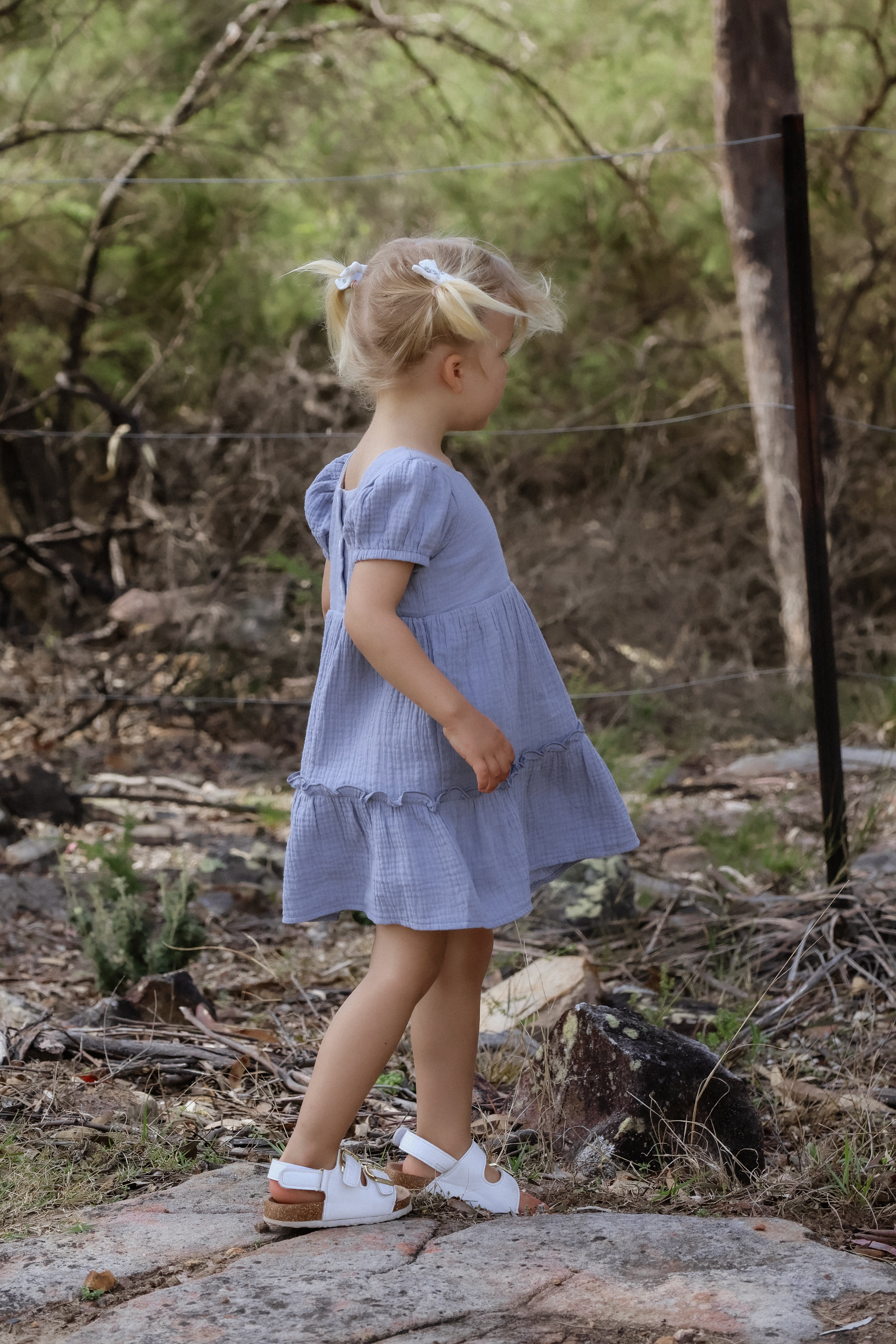 Crafted from breathable, soft 100% organic cotton fabric, this dress ensures all-day comfort, making it perfect for sunny days at the park, birthday parties, or family gatherings. Featuring three buttons on the back, making dressing a breeze. Whether it's a day of adventure or a special event, this simple yet stylish design allows your little girl to express her personality effortlessly. The gorgeous bubble sleeves add a playful touch, while the cute frill detail elevates the overall look, making it a versatile choice for any occasion.